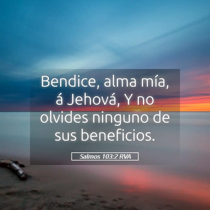 Texto bíblico: «Bendice, alma mía, a Jehová, y no olvides ninguno de sus beneficios» (Salmos 103:2).